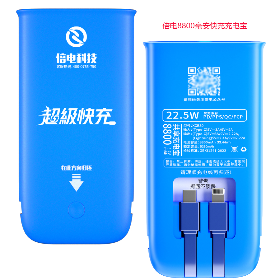 兼容性强:8800毫安兼容倍电快慢充扁宝机柜,可实现全国通用异地归还。